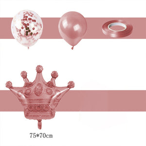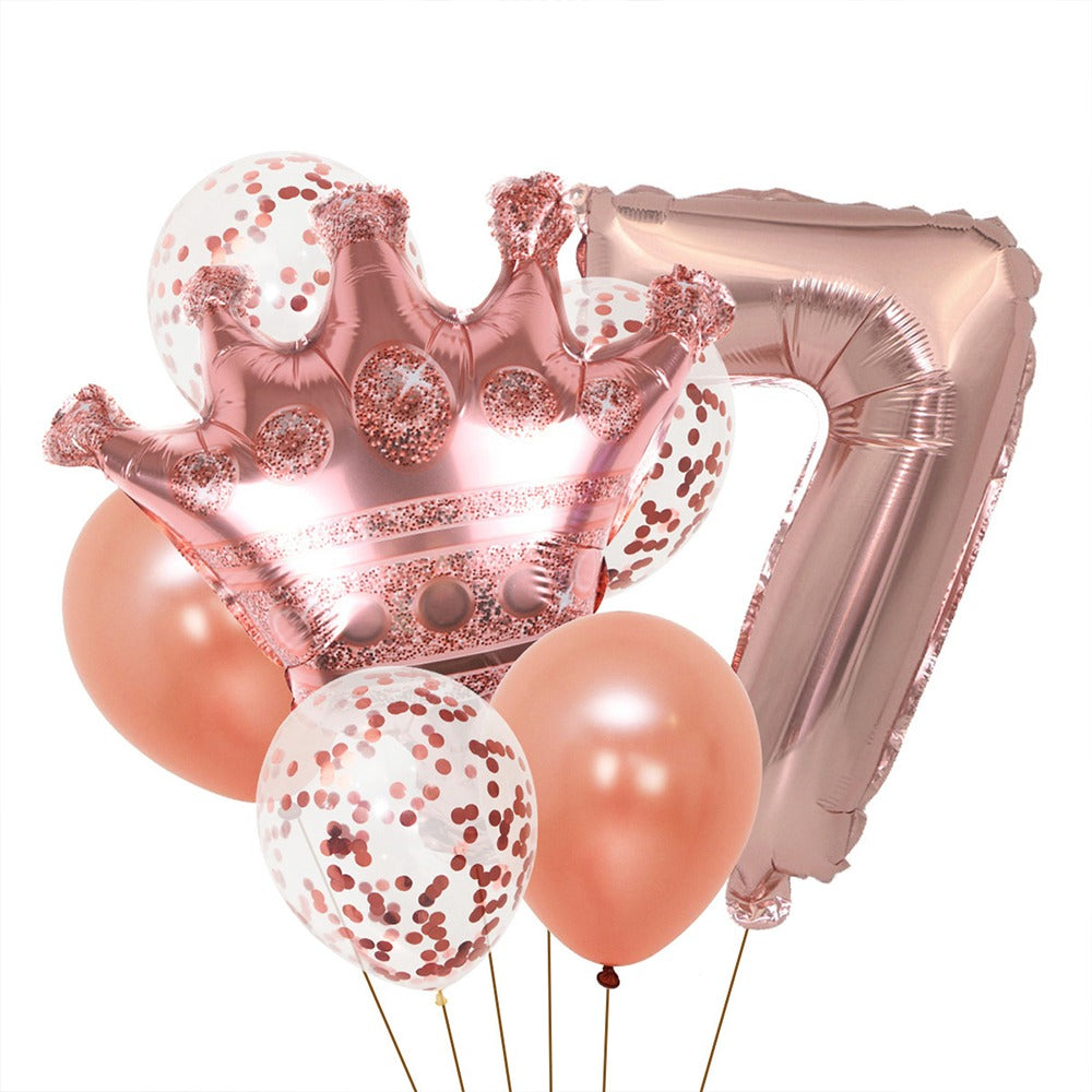 Set 7 baloane pentru aniversare, Coroana, Cifra 7, Latex biodegradabil, Auriu/Rose