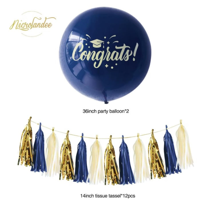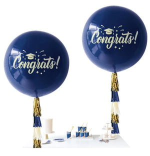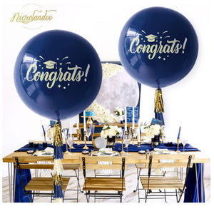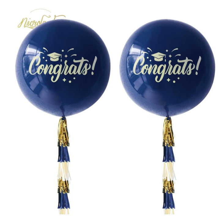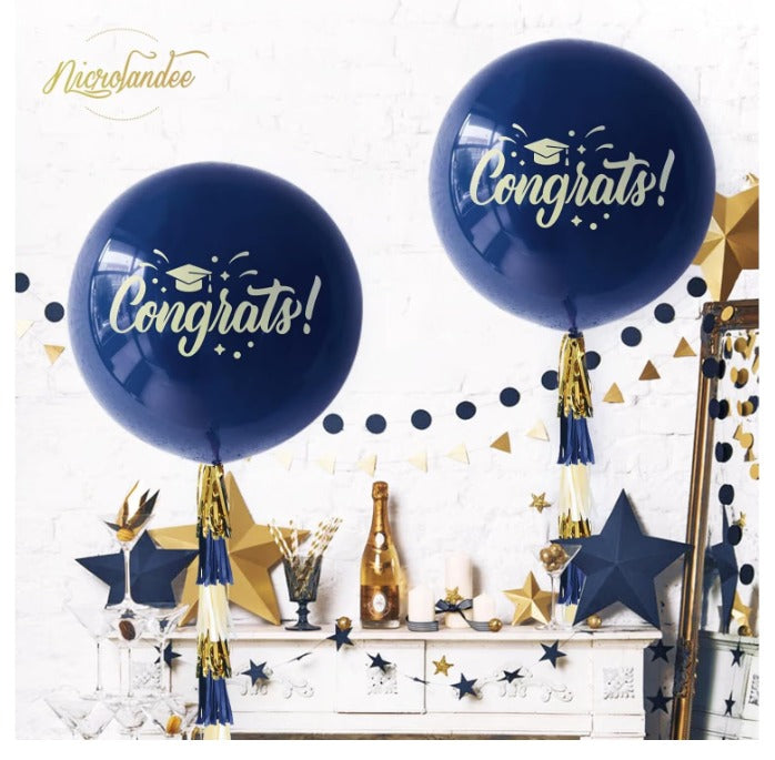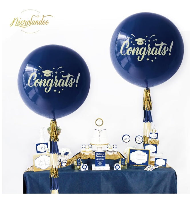 Set de 2 Baloane Uriase pentru absolvire NICROLANDEE, 90 cm, Franjuri incluse, culoare Albastru Marin