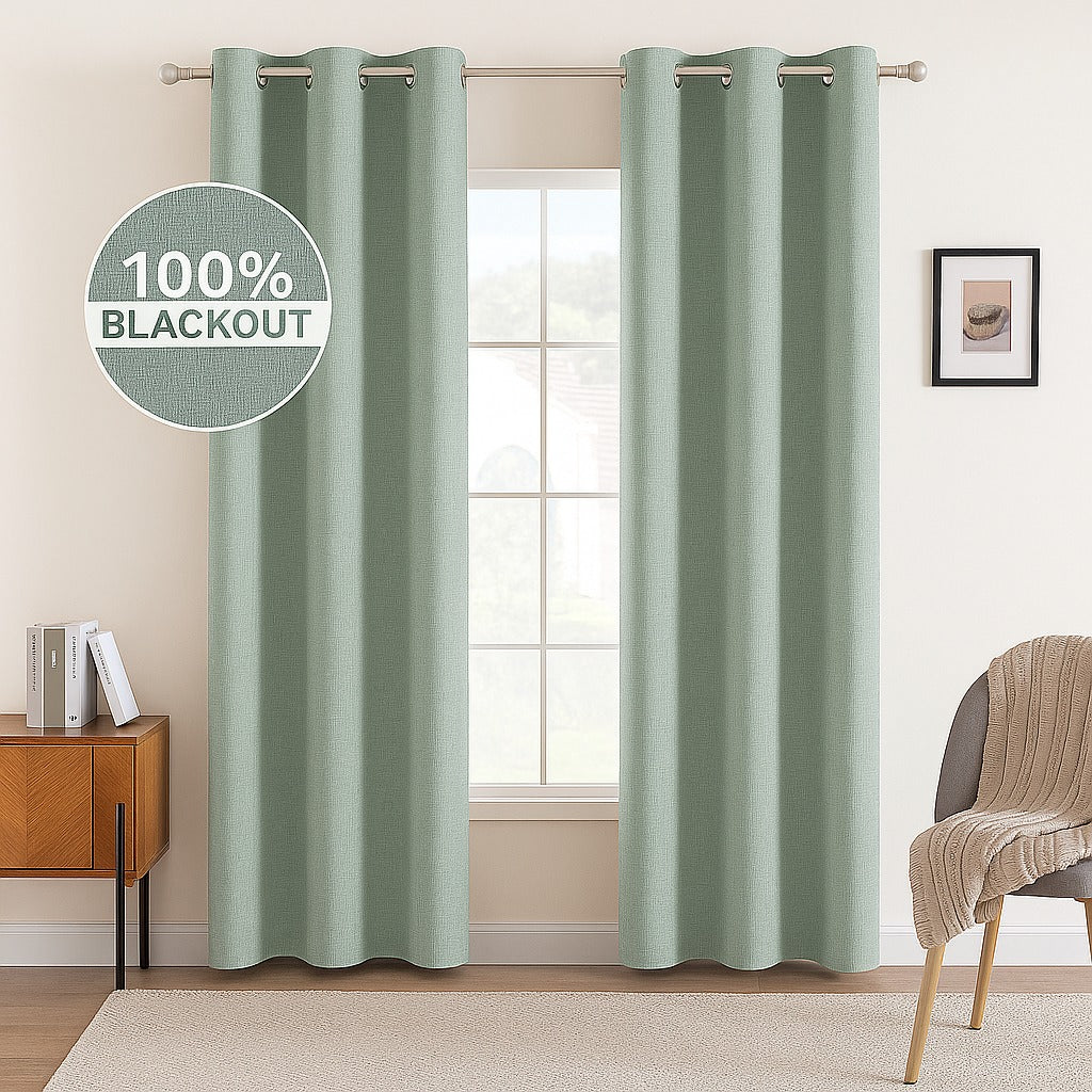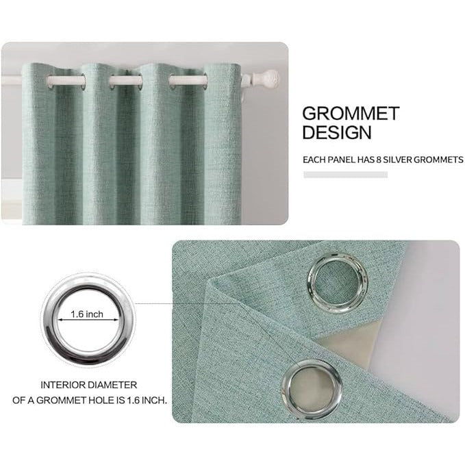 Set de 2 Draperii MIULEE, opace, poliester, cu inele, 140 x 140, verde menta
