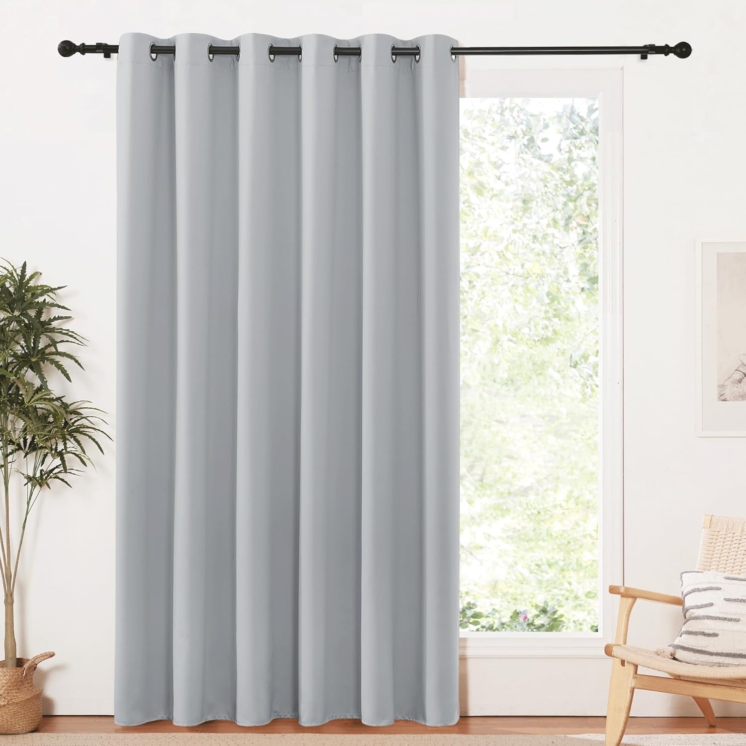 Set de 2 Draperii PONY DANCE, Opace, cu inele, 140 x 245 cm, Alb-Cenusiu