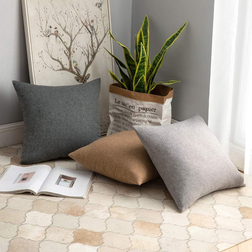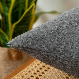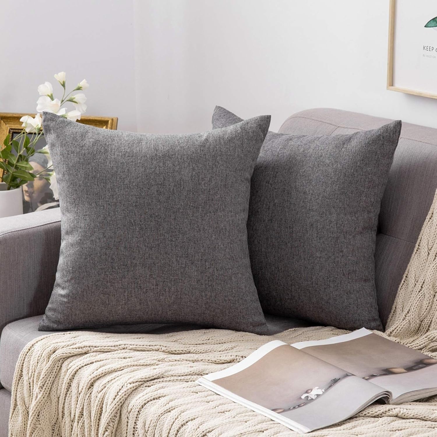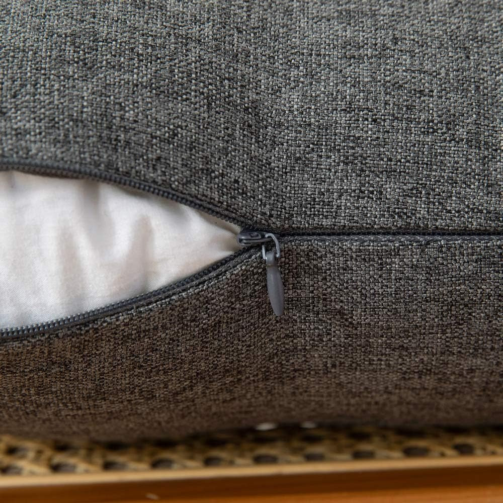Set de 2 huse de perna MIULEE, 40x40 cm, imitatie de in, fermoar, culoare gri inchis