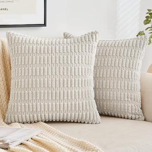 Set de 2 Huse decorative EMEMA, Catifea, 40 x 40 cm, culoare Bej