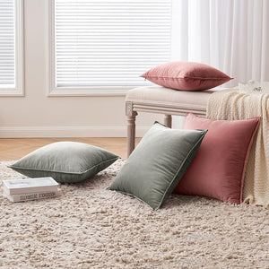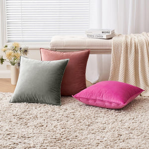 Set de 2 Huse decorative EMEMA, Catifea, 40 x 40 cm, Margini indoite, culoare Roz burgund