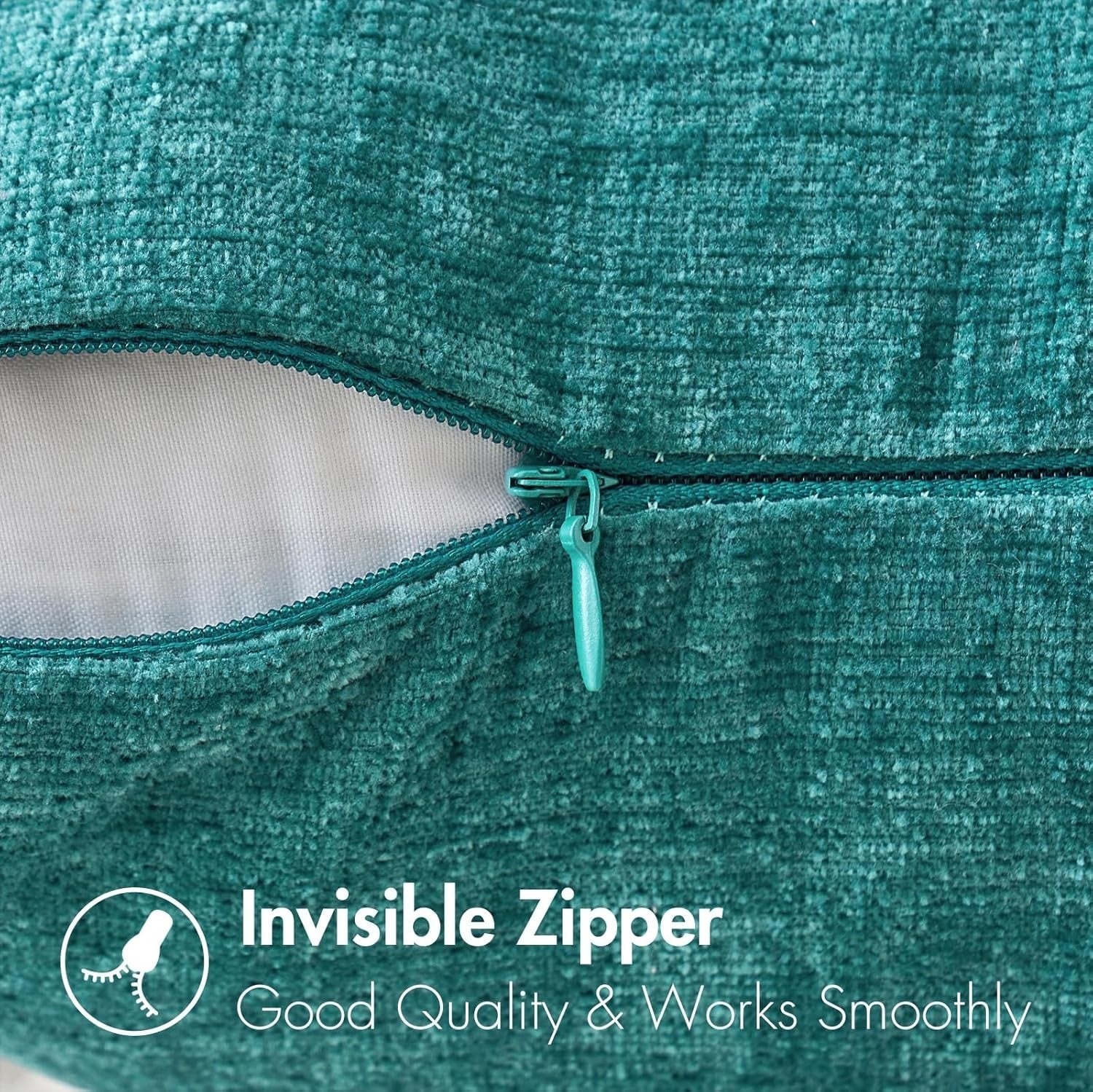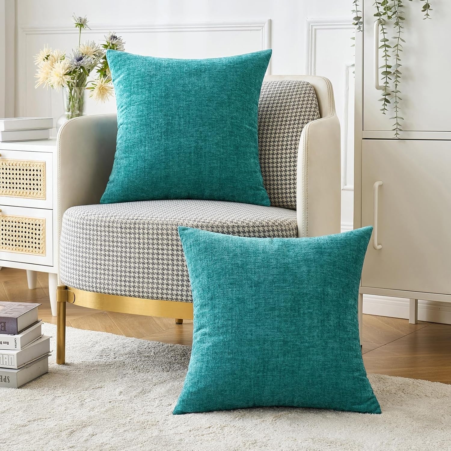 Set de 2 huse decorative MIULEE pentru perne, 45 x 45 cm, Chenille moale, culoare Turcoaz