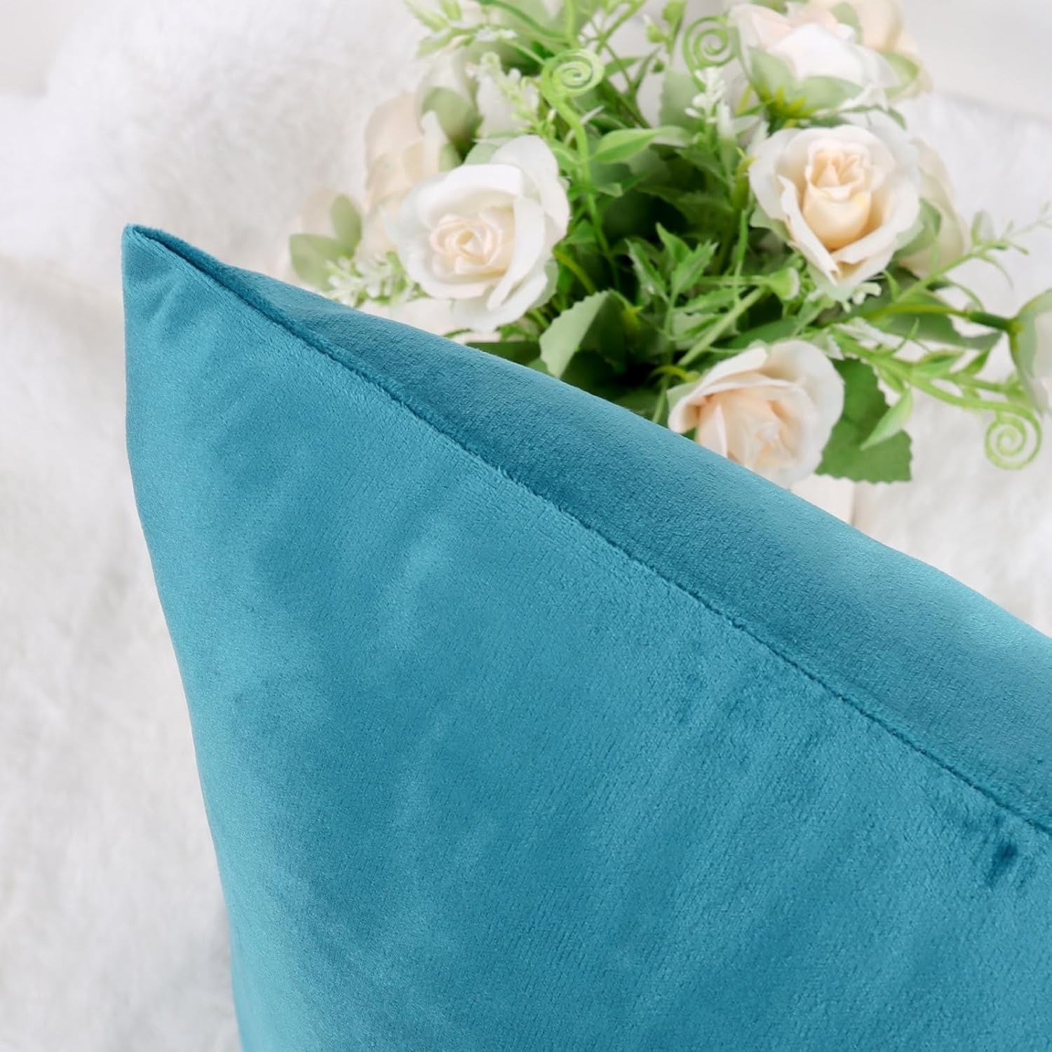Set de 2 Huse decorative pentru perne CALIYO, 45x45 cm, catifea, lavabile, culoare turcoaz