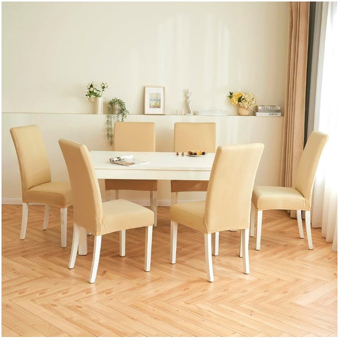 Set de 2 Huse pentru scaune MIULEE Premium, Elastice, Spatar inalt, Lavabile, Detasabile, culoare Bej