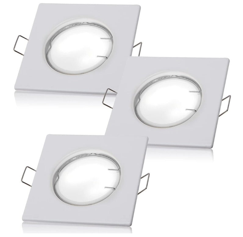 Set de 3 Spoturi LED Lex Collective, patrate, 230 V, 80x55x27 mm incastrate, GU10, 3W, rotunde, dimabil, lumina calda alba, culoare Alb