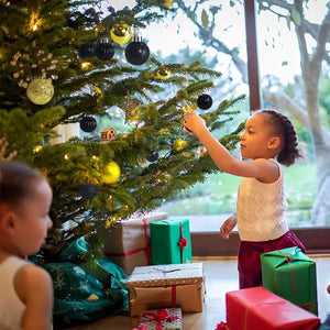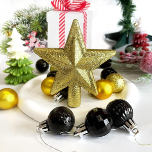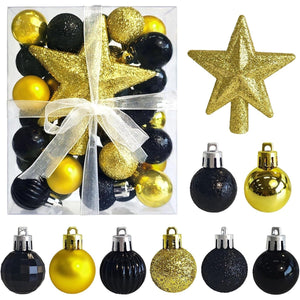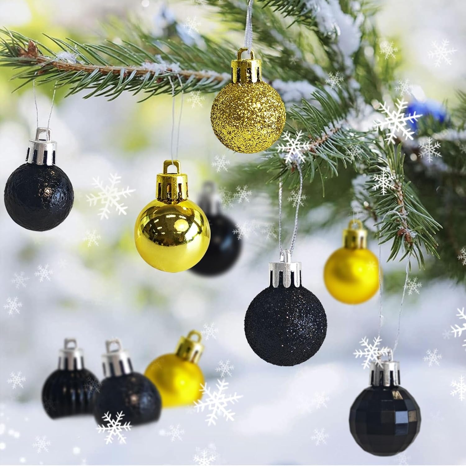 Set de 30 globuri de Craciun, agatatoare, 3 cm, potriviti pentru brazi de 30-120 cm, culoare negre si aurii