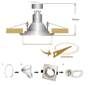 Set de 6 Rame de monate pentru Spoturi, Patratem Otel inoxidabil, 68 mm cu soclu GU10, rotire la 30°, AC 220-240V