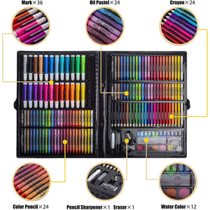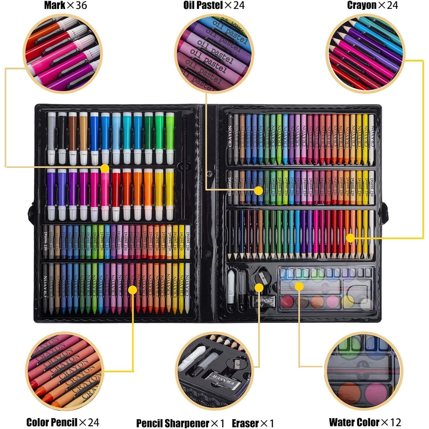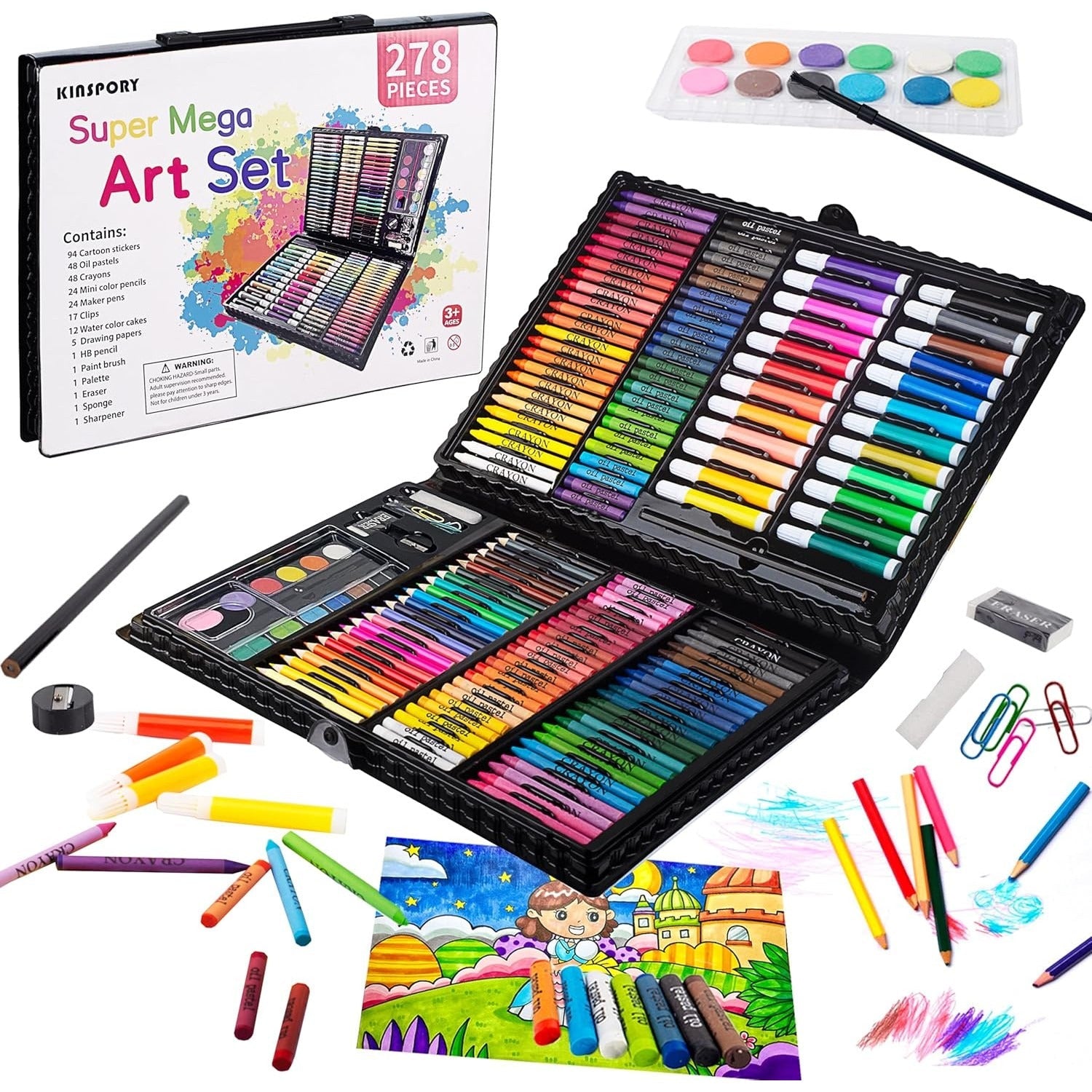 Set de Pictura si Desen KINSPORY, 278 Piese, Markere, Pasteluri Ulei, Creioane Cerate si Colorate, Acuarele, Paleta, Pensula, Ascutitoare, Foi de Desen
