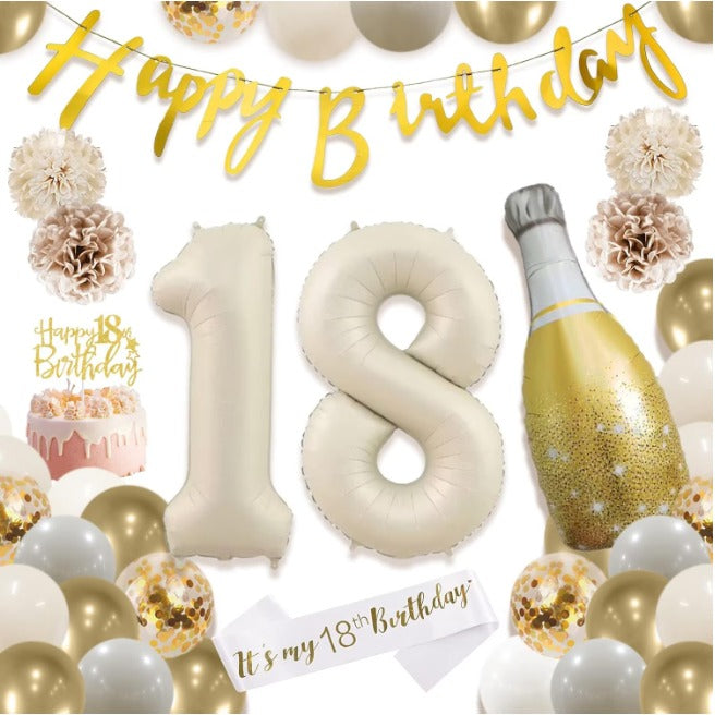 Transforma petrecerea de 18 ani intr-un eveniment memorabil cu acest set complet de decoratiuni SunnyLisa. Cu o combinatie eleganta de culori bej si auriu, setul este ideal atat pentru fete, cat si pentru baieti si se potriveste perfect pentru petreceri organizate in interior sau exterior.