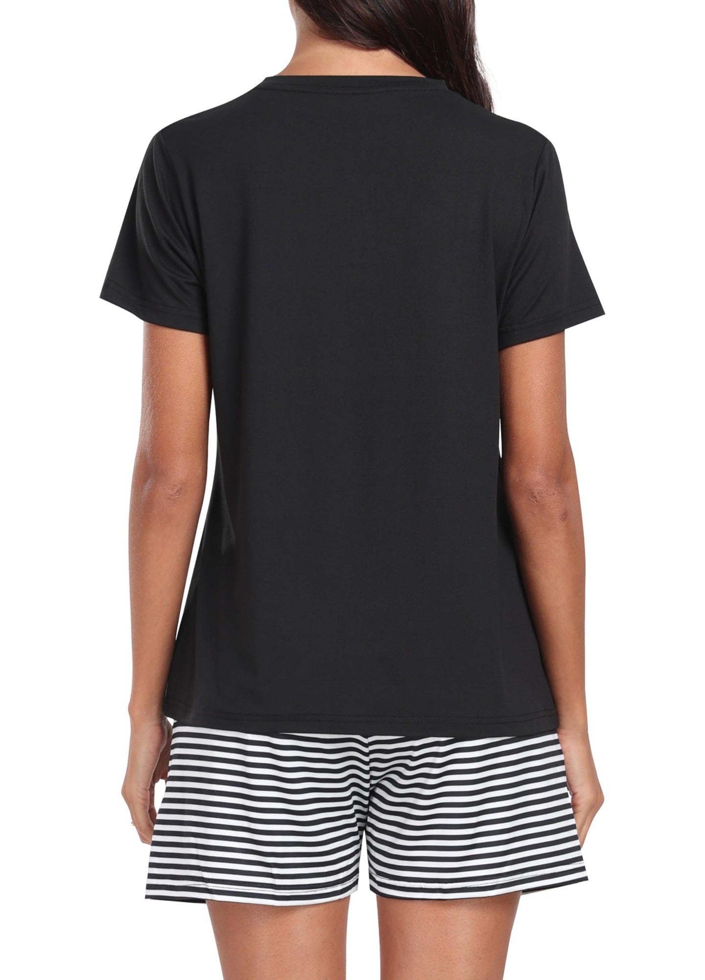 Set pijama dama MoFiz, marimea M, poliester, tricou si pantaloni scurti, negru