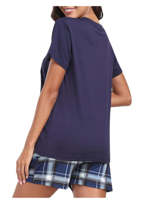 Set pijama dama MoFiz, marimea XL, poliester, tricou si pantaloni scurti, culoare albastru inchis
