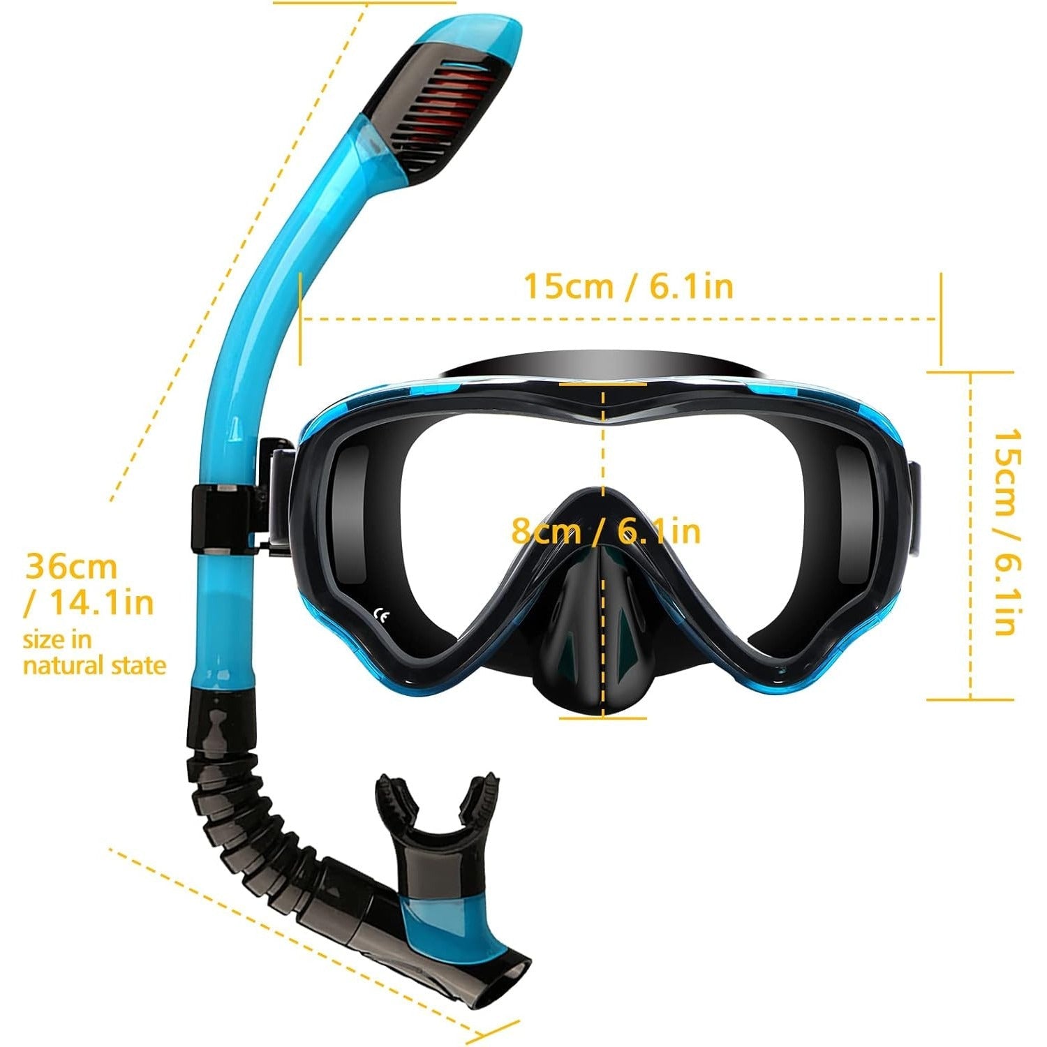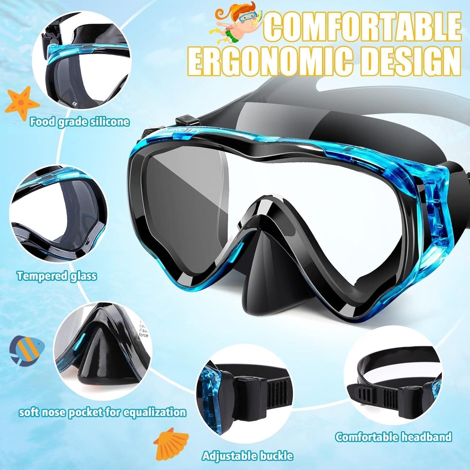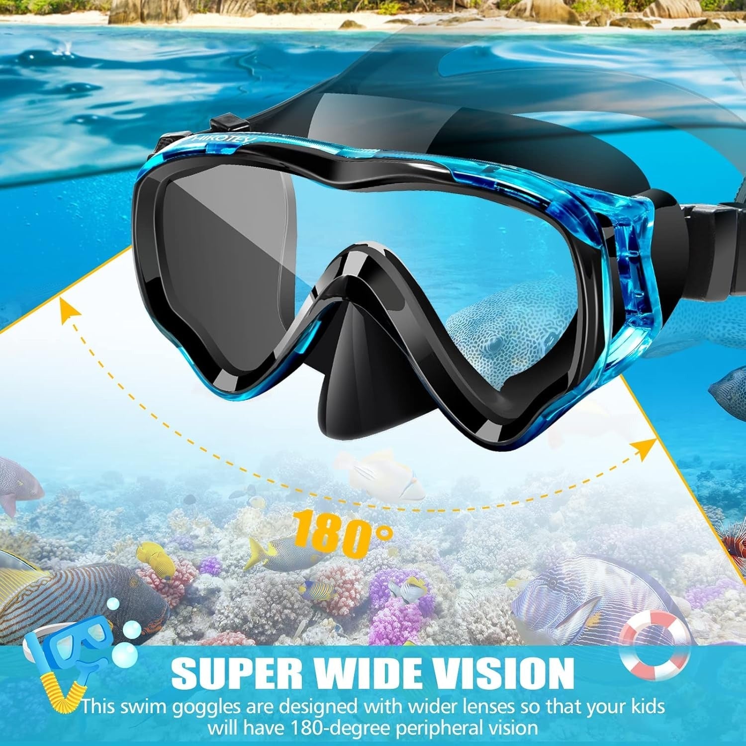 Set Snorkeling pentru copii HIKOTEY, masca anti-aburire, vedere panoramica 180°, anti-infiltratii, albastru si negru