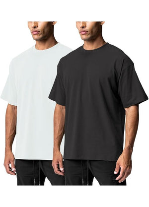 Set tricouri barbati XYKJFIT, marimea M, bumbac, casual, sport, oversized, maneca scurta, culoare alb si negru