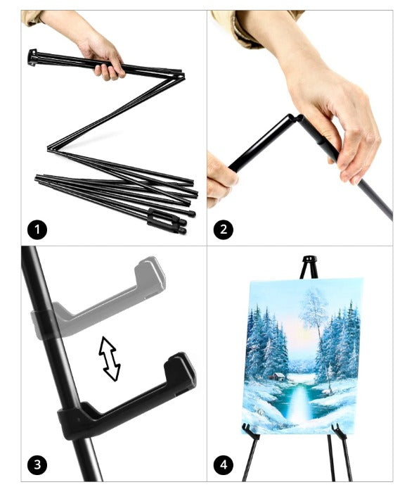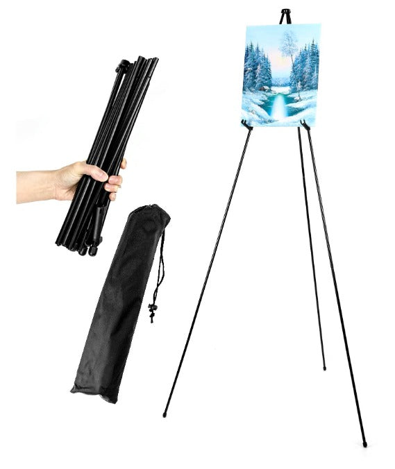 Sevalet pliabil QWORK, 168 cm, din metal, reglabil, cu husa, culoare negru