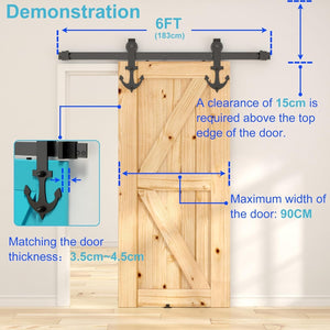 Sistem usa glisanta SKYSEN, 200 cm, otel carbon, design ancora, set complet cu sina si accesorii, max 120kg, negru