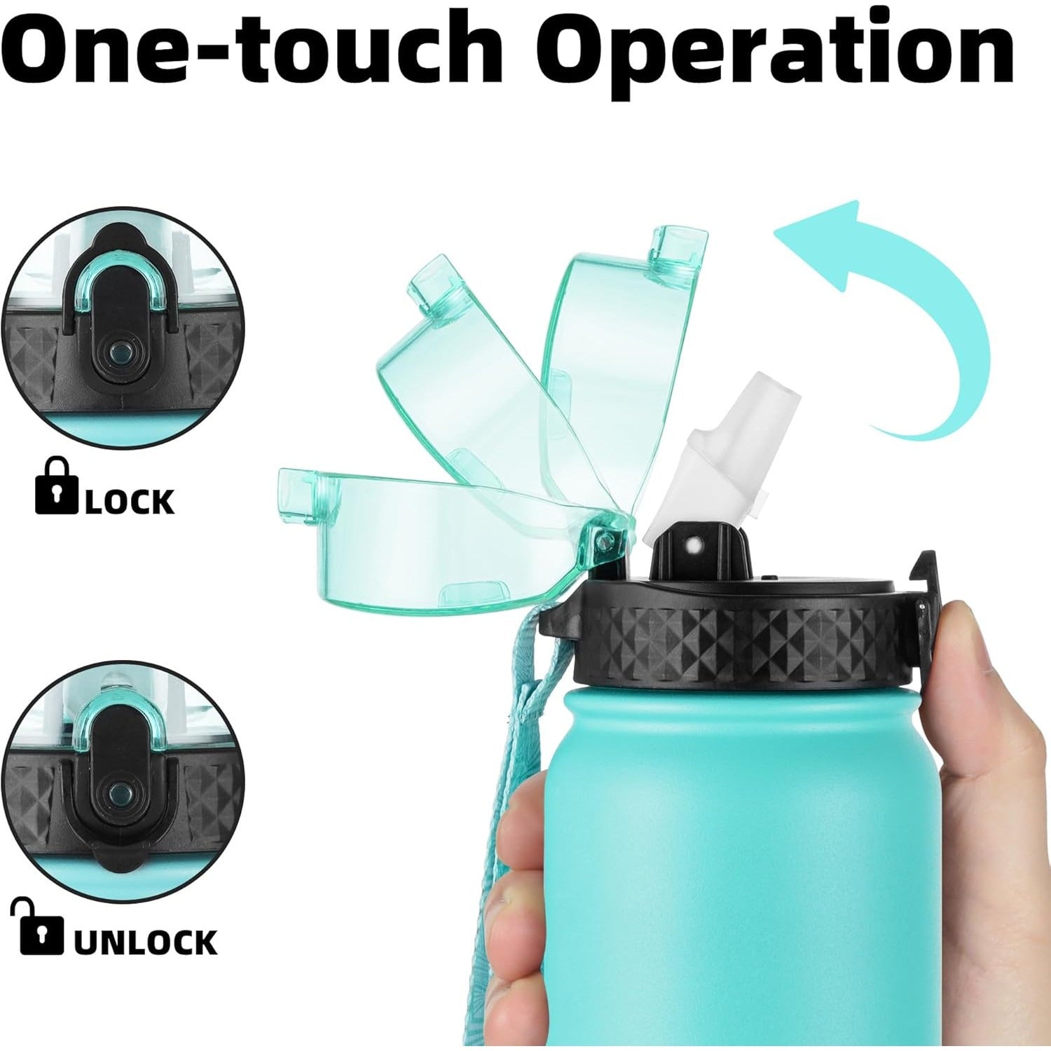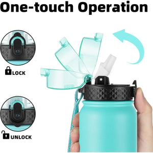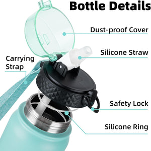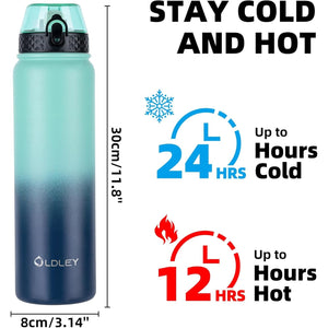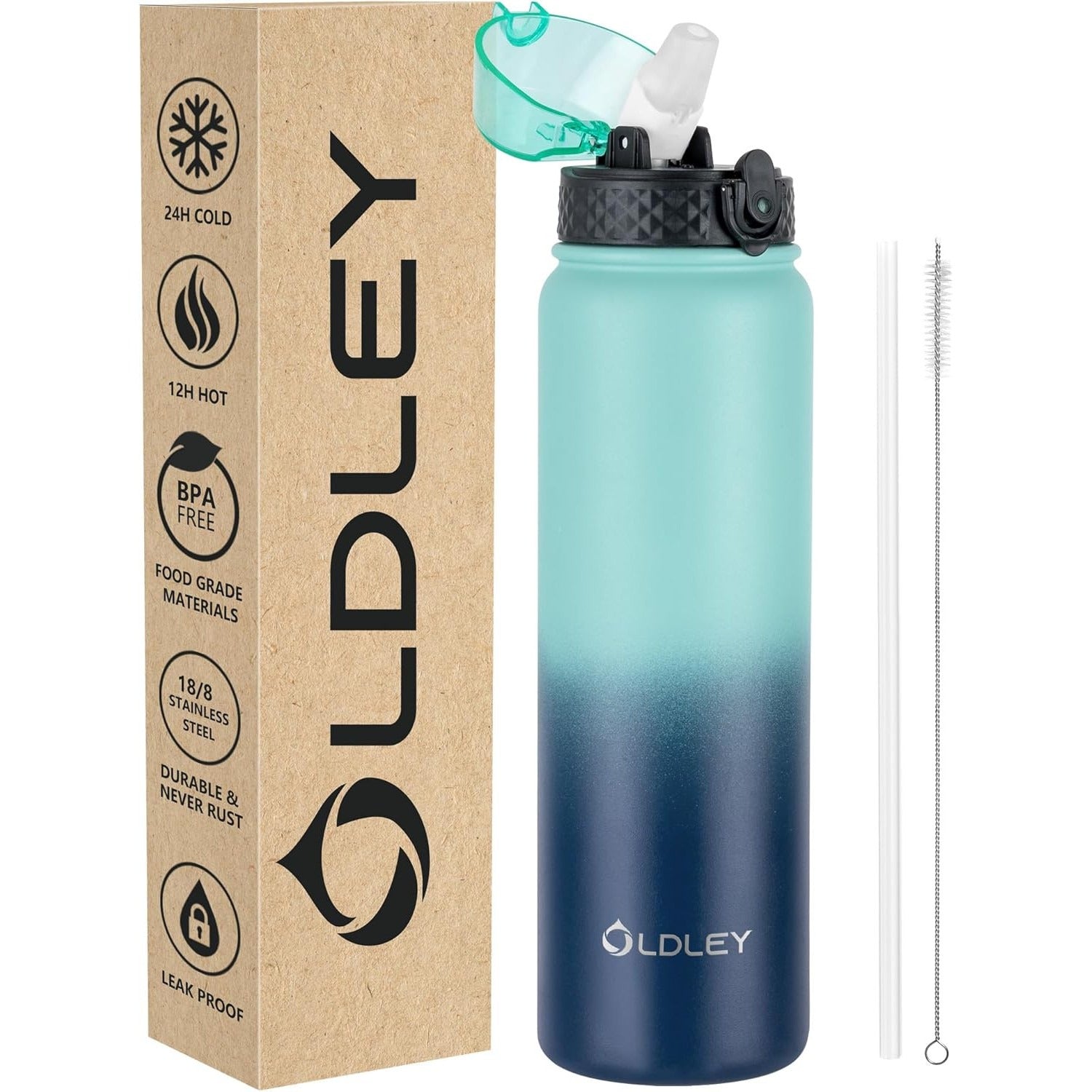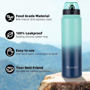 Sticla Apa OLDLEY, 1000 ml, cu Pai si Capac, Otel Inoxidabil, culoare verde-albastru