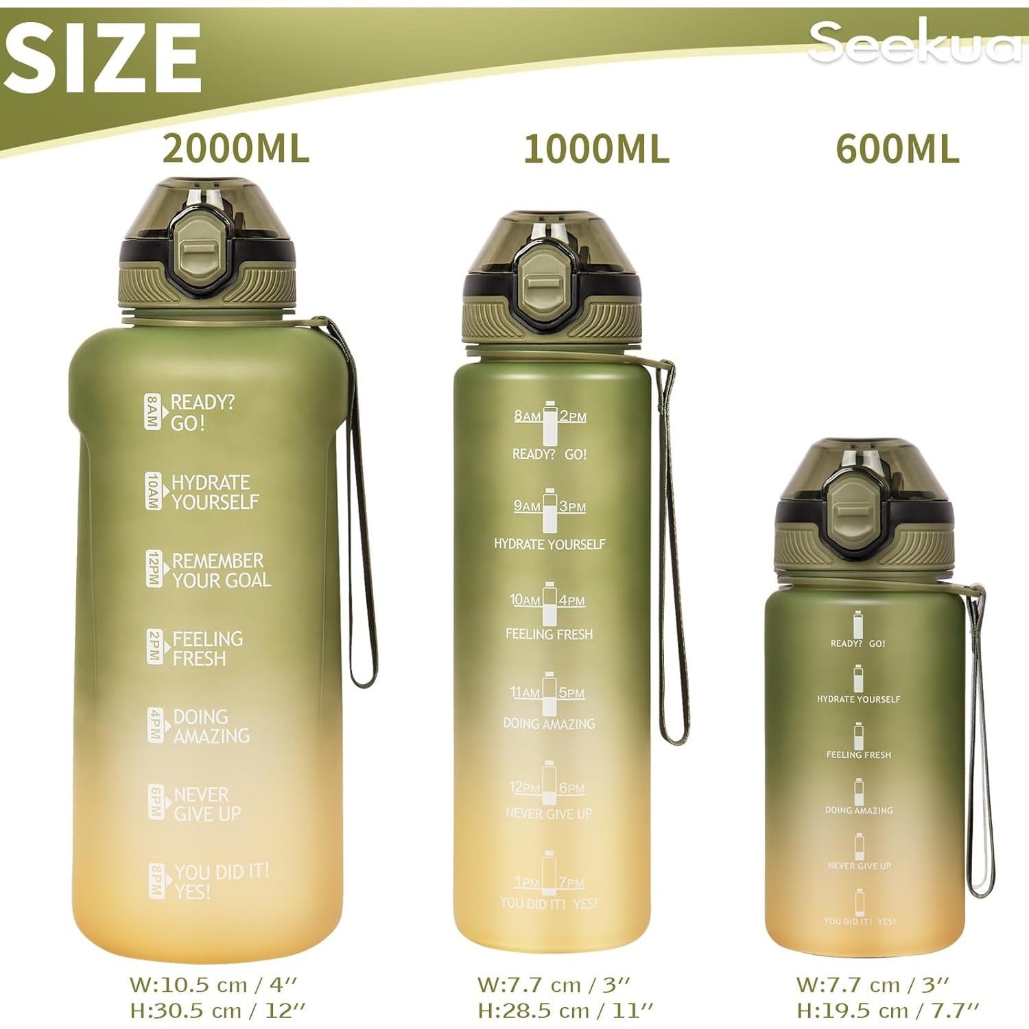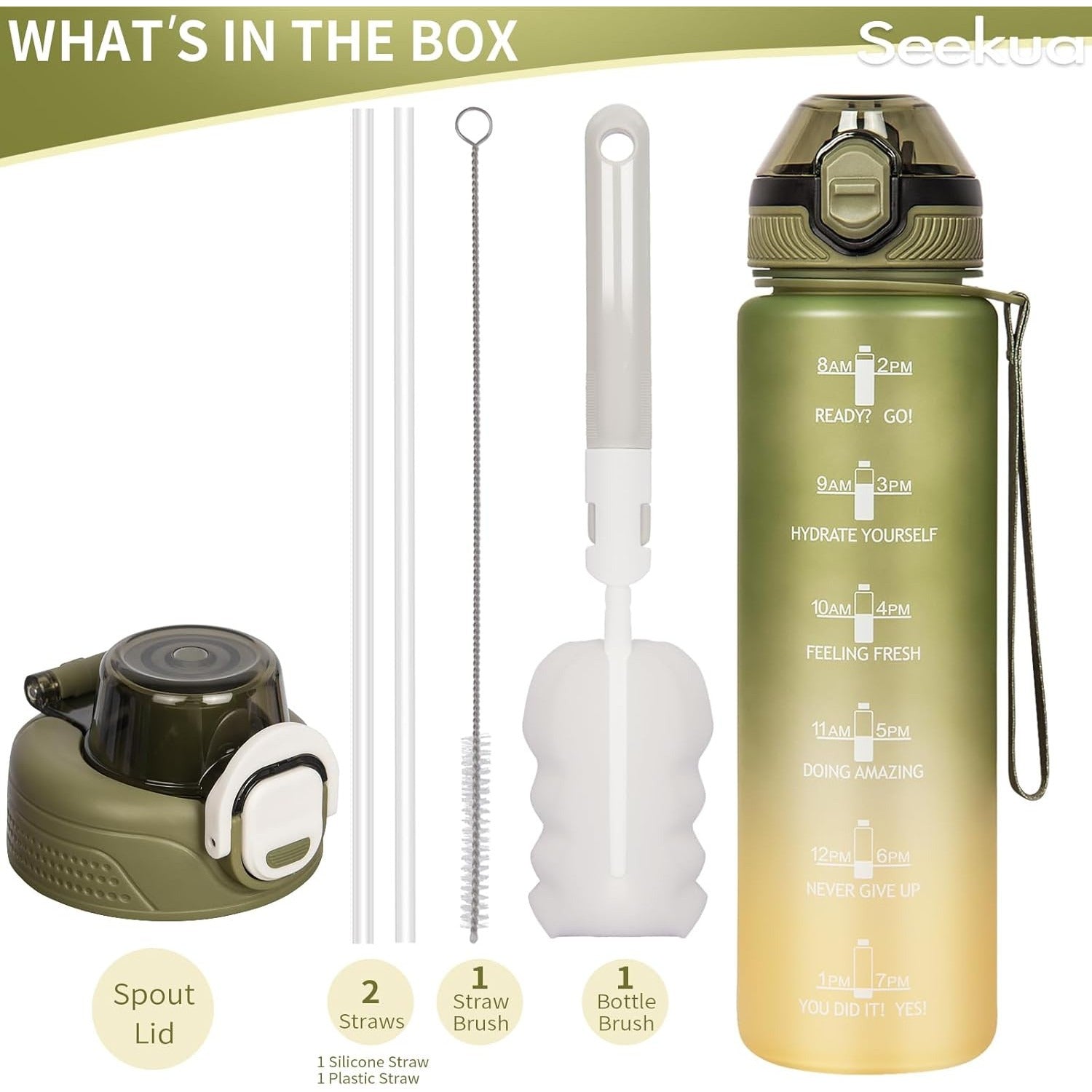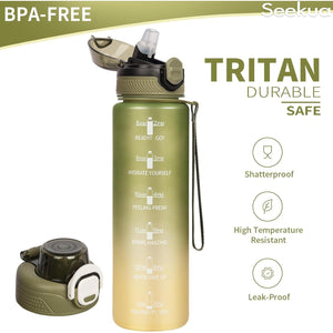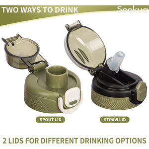 Sticla apa Seekua, 1L, Tritan, cu pai, 2 capace, curea transport, culoare verde masliniu