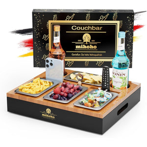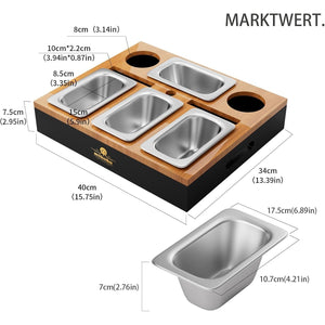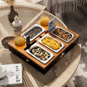 Tava de servire Mihoho, 40x34x8 cm, lemn si inox, 6 compartimente, negru si maro