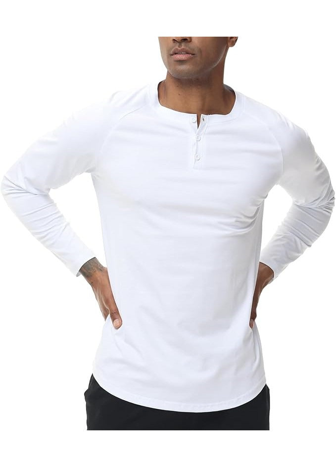 Tricou barbati XYKJFIT, marimea S, bumbac, maneca lunga, slim fit, respirabil, culoare alb