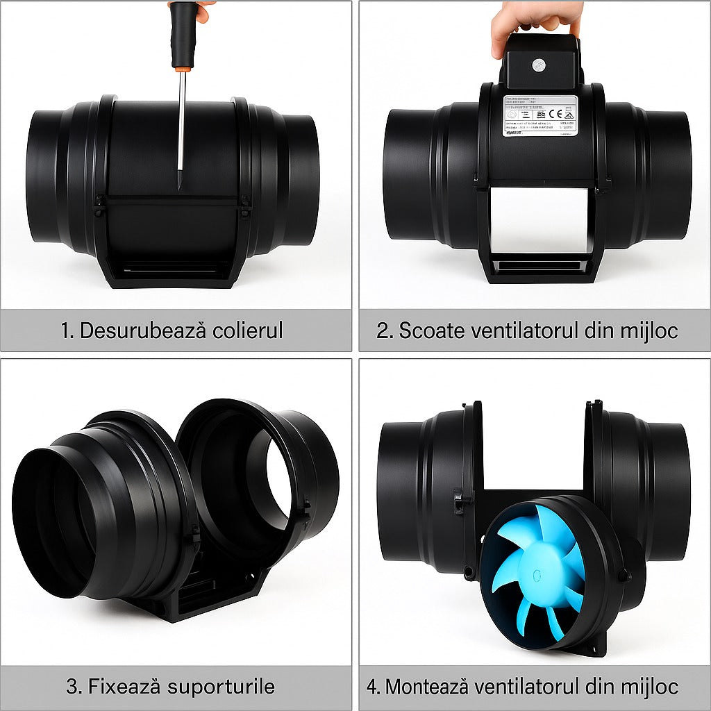 Ventilatorul inline Brogachy este proiectat pentru o ventilatie eficienta si silentioasa in spatii inchise, umede sau tehnice. Ideal pentru bai, bucatarii, corturi de plantare sau sisteme hidroponice, acest model combina performanta ridicata cu un design compact si rezistent.