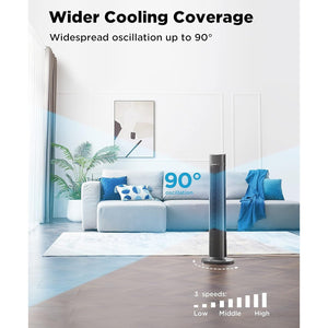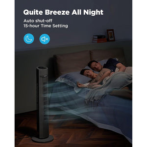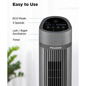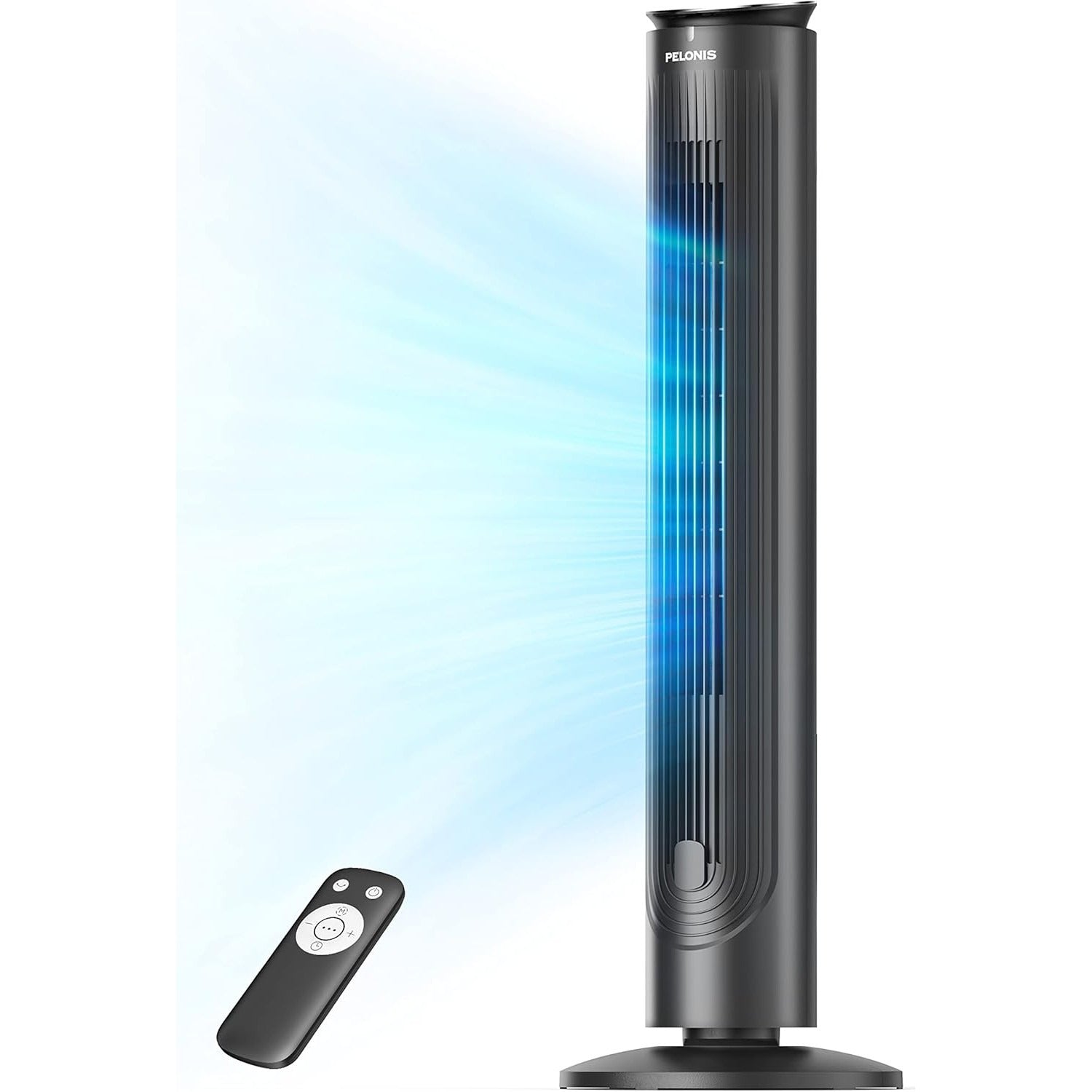 Ventilator Pelonis, 5 Viteze, 106 cm, Oscilant 60°, Telecomanda, Timer 9H, 4 Moduri de Functionare, 33dB, Design Compact, Silentios, Negru